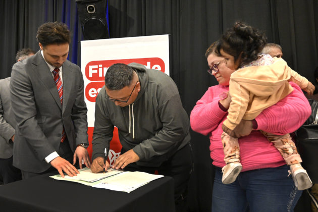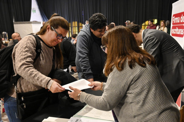 Vecinos y vecinas formalizaron la documentación de regularización dominial que garantiza la propiedad de su vivienda. El acto se ejecutó en el marco de la Operatoria Procrear bajo la Ley 10.830.