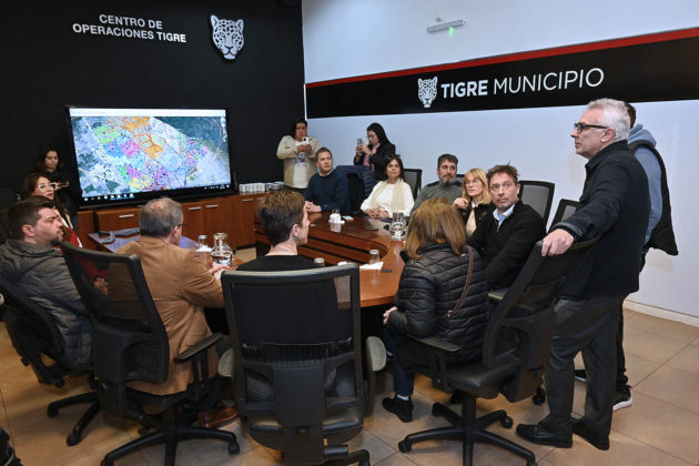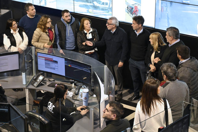 Zamora y los dirigentes de Somos Buenos Aires se reunieron en el Comando de Operaciones de Emergencias Municipales (COEM). Allí, se proyectó un video institucional sobre el Centro de Operaciones Tigre y llevaron adelante una mesa de trabajo y diálogo, donde el intendente interiorizó a la comitiva en las herramientas tecnológicas que aplican como la inteligencia artificial y drones. Posteriormente, recorrieron la central de cámaras, el Laboratorio de Análisis de Imágenes Criminológicas y la oficina del Ciber COT.