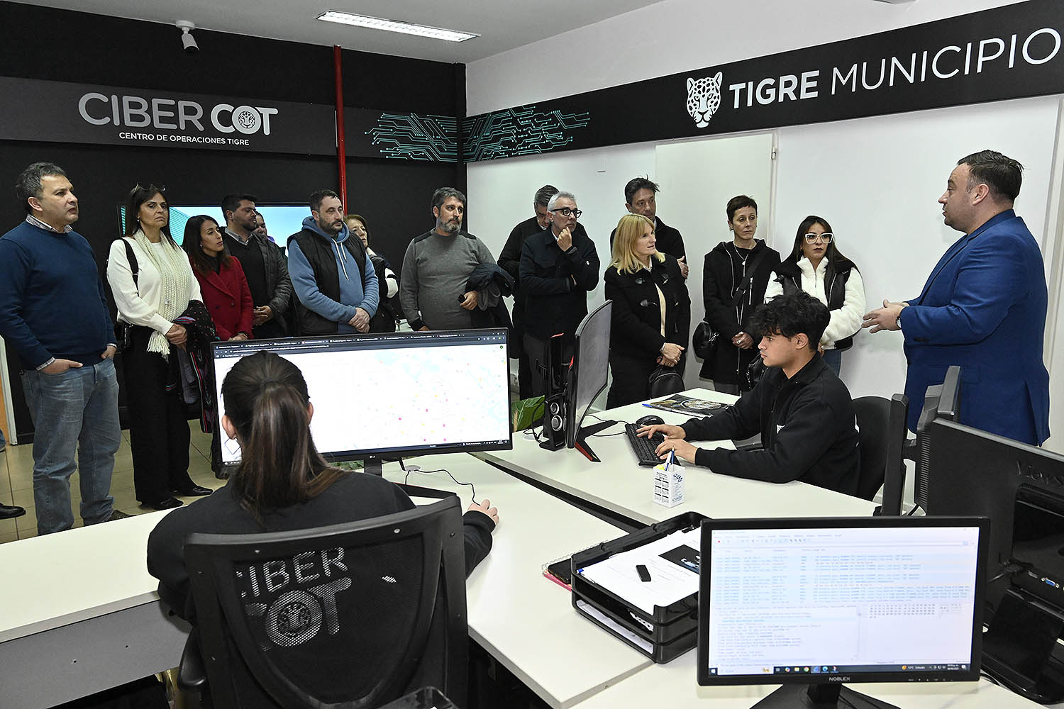 Zamora y los dirigentes de Somos Buenos Aires se reunieron en el Comando de Operaciones de Emergencias Municipales (COEM). Allí, se proyectó un video institucional sobre el Centro de Operaciones Tigre y llevaron adelante una mesa de trabajo y diálogo, donde el intendente interiorizó a la comitiva en las herramientas tecnológicas que aplican como la inteligencia artificial y drones. Posteriormente, recorrieron la central de cámaras, el Laboratorio de Análisis de Imágenes Criminológicas y la oficina del Ciber COT.