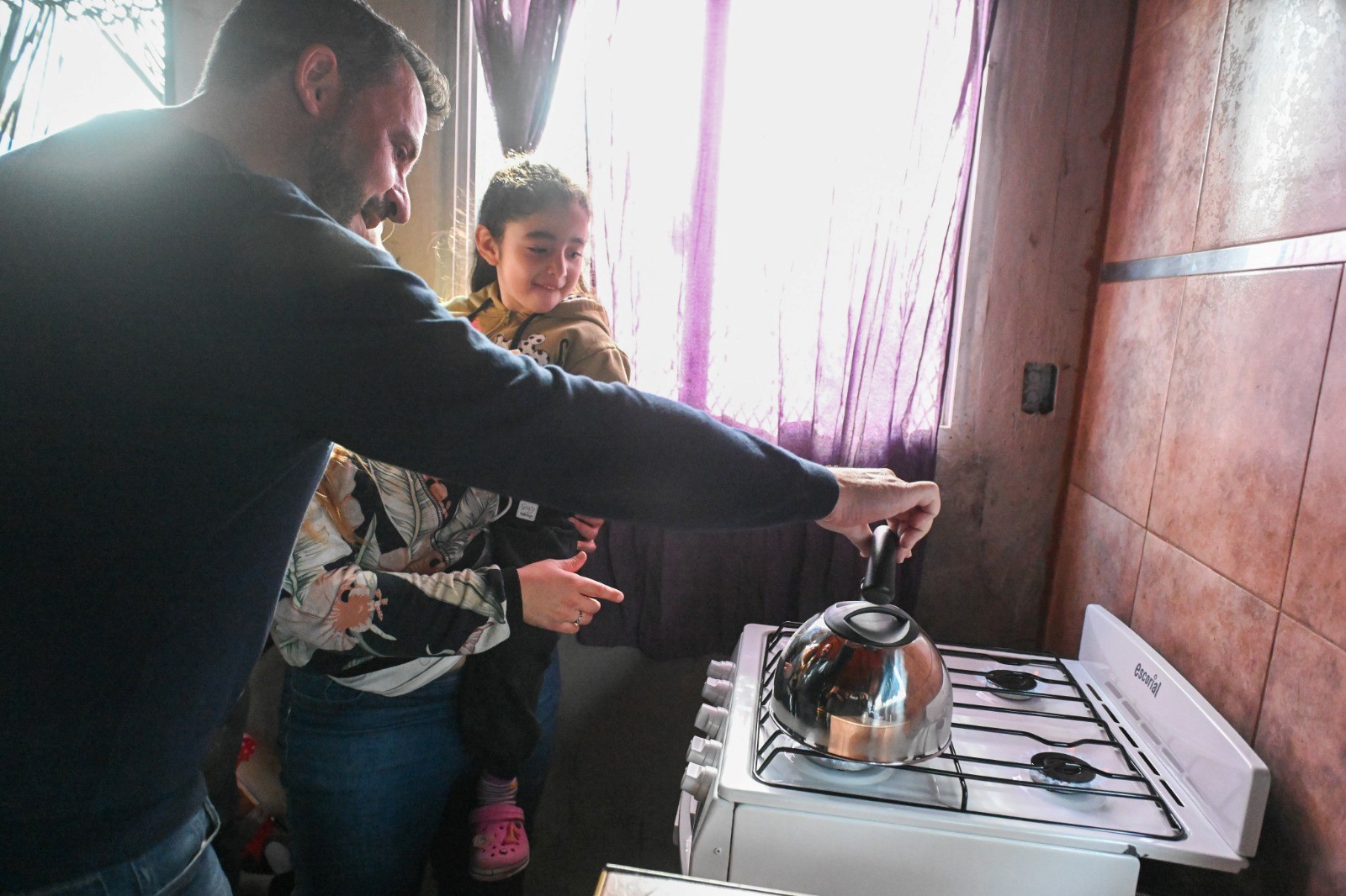 Sujarchuk compartió con vecinos y vecinas de la zona el encendido simbólico de la llama votiva. Luego, el equipo técnico de Naturgy instaló un medidor y realizó las pruebas necesarias para habilitar el servicio en el hogar de Aldana Monjes, una de las beneficiarias que celebró la noticia junto a sus hijos y su pareja.