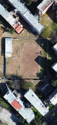 La cancha es de hormigón de 24 x 45 metros. Las obras consintieron en el movimiento de suelos y continuó con la etapa de hormigonado, de demarcación, y pintura.