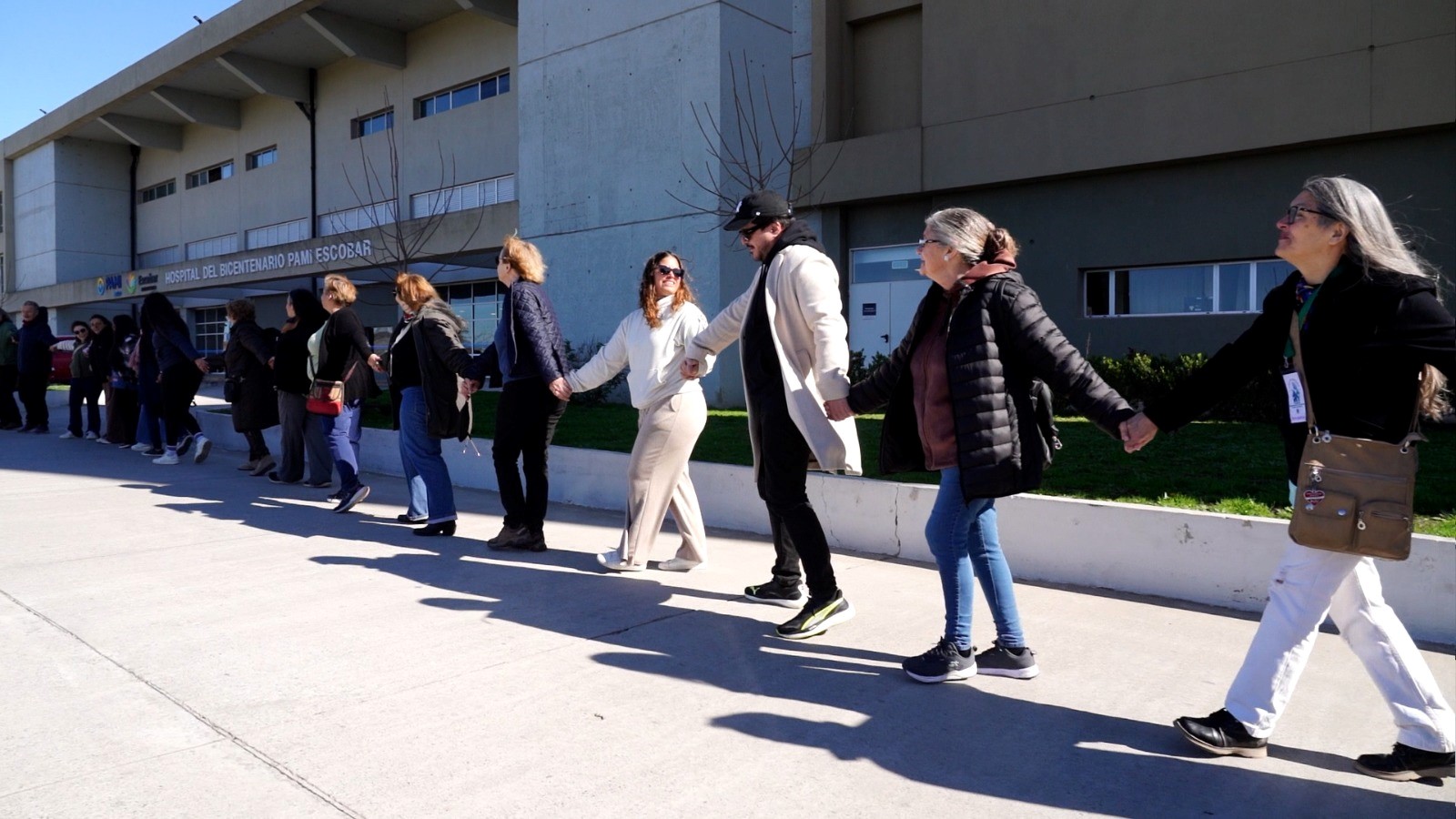 Un grupo de vecinos, junto a médicos, enfermeros y trabajadores de la Municipalidad realizaron este sábado un abrazo simbólico a la Maternidad inconclusa del Hospital del Bicentenario de Garín. La obra, iniciada por el Gobierno Nacional anterior y luego paralizada por la gestión del presidente Milei, tiene más del 95% de avance e incluye equipamiento con tecnología de punta, pero continúa sin inaugurarse. El secretario de Salud del Municipio y segundo candidato a concejal de Fuerza Patria, Juan Manuel Ordónez, participó del abrazo simbólico y explicó: “Para que la maternidad funcione solo nos falta un equipo similar a un generador, un tablero eléctrico, es decir, prácticamente nada. Pero Nación no lo compra y tampoco habilita el expediente que permitiría que lo compre el Municipio o la Provincia. Exigimos su apertura ya: que la abra el Gobierno Nacional o que nos dejen finalizarla, no se puede ser tan ineficiente y cruel. Esta postura absurda del Gobierno Nacional afecta directamente a los escobarenses”.
