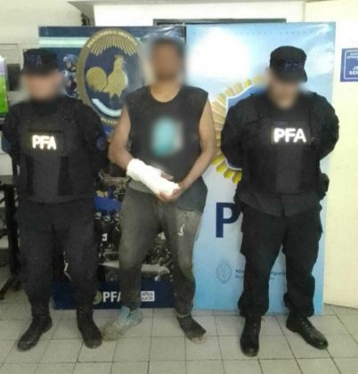 Con la anuencia judicial, una brigada se dirigió al lugar y, al ser descubierto, el acusado intentó resistirse atacando a los policías con una pala e intentando despojar a uno de ellos de su arma. En el forcejeo se produjo un disparo que impactó en su mano derecha. El hombre fue reducido, esposado y trasladado al Hospital “Simplemente Evita” para recibir atención médica.