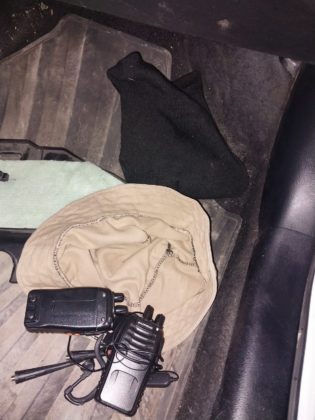 Al momento de la inspección, los funcionarios comprobaron que la documentación del rodado y la licencia de conducir eran falsas, por lo que registraron minuciosamente el interior del vehículo y dentro de las mochilas de los ocupantes detectaron dos equipos de comunicación “Handy”, dos pasamontañas, guantes, una barreta “pata de cabra”, cuatro destornilladores, un inmovilizador eléctrico, un binocular, una cinta multiuso de alta resistencia y tres prendas de vestir (con estampados de distintas empresas y servicios médicos).