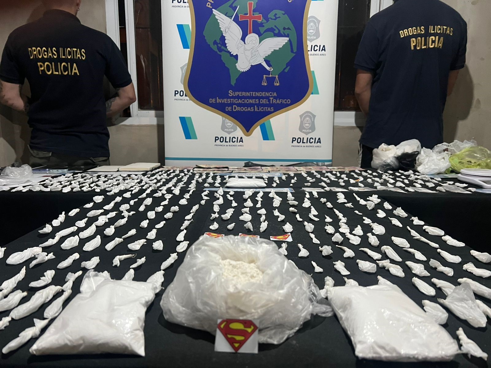 Como resultado del operativo fueron aprehendidos un hombre y una mujer de 32 años de edad mientras que se secuestraron 500 envoltorios de cocaína y bolsas sin fraccionar que suman 1,1 kg. También se incautaron un frasco con cogollos de marihuana, dinero en efectivo, cuatro teléfonos celulares, una balanza de precisión, sustancias de corte y otros elementos utilizados para el fraccionamiento de la droga.