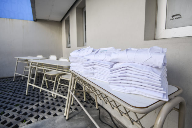 “Estamos distribuyendo guardapolvos y mobiliario que fueron elaborados por internos en los talleres de nuestras unidades penitenciarias como parte del programa ‘Más Trabajo, Menos Reincidencia’”, subrayó el Gobernador y añadió: “La articulación entre diferentes áreas de Gobierno nos permite generar estas políticas que generan trabajo para prevenir el delito y, al mismo tiempo, dar respuestas a las necesidades de los pibes y pibas de las escuelas bonaerenses”.