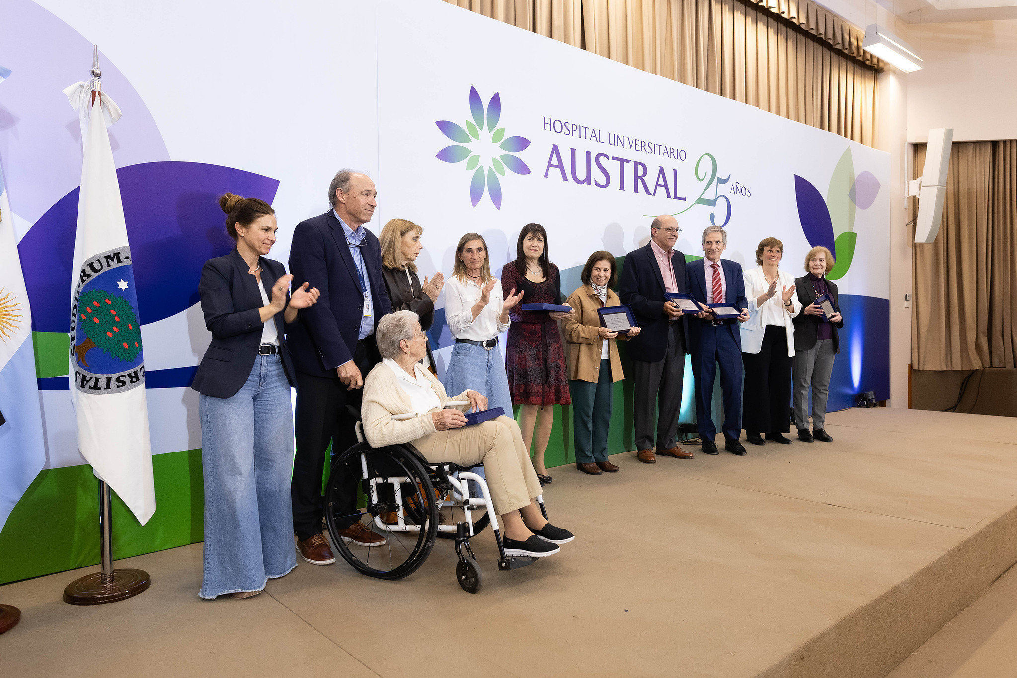 El Hospital Universitario Austral conmemoró, el martes 16 de septiembre, sus 25 años con una emotiva ceremonia que fue, al mismo tiempo, recuerdo de lo vivido y mirada hacia lo que viene. Autoridades, benefactores, médicos, colaboradores, pacientes y familias se reunieron en el auditorio para repasar un cuarto de siglo de logros y agradecer a quienes hicieron posible un proyecto que, desde su apertura en el año 2000, se consolidó como referente en salud, docencia e investigación en la Argentina.