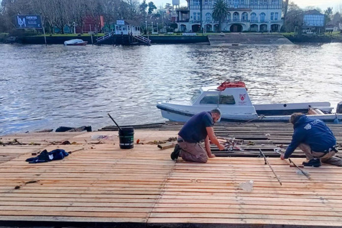 La cuadrilla local llevó adelante la reconstrucción a nuevo del techo del muelle que se encuentra en el CAFyS del Río Carapachay. Además, ejecutó trabajos de reparación en la rampa que se encuentra junto al Club de Regatas Hispano Argentino sobre el Río Luján.