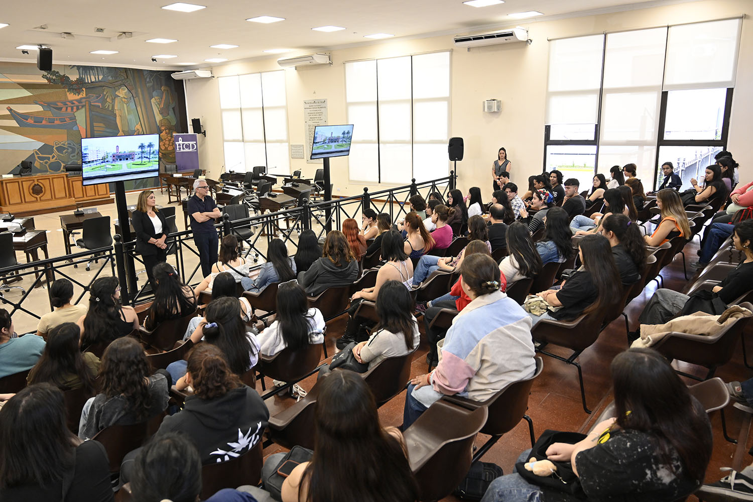 El intendente acompañó la actividad que se llevó adelante en el HCD junto a estudiantes del nivel terciario y universitario del distrito. Los presentes realizaron un espacio de debate sobre la actualidad de la iniciativa de becas que ofrece la gestión y participaron de un taller de educación financiera.