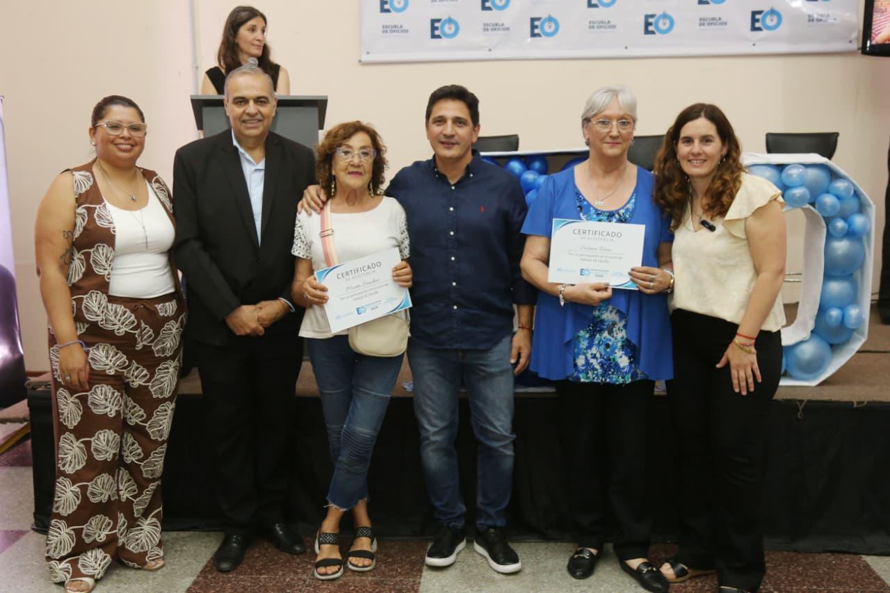 Acompañado por Óscar Conde y Sibila Botti, y bajo el lema “Compromiso con el desarrollo y el futuro sustentable”, el ministro entregó los certificados de finalización a 130 vecinas y vecinos que se capacitaron en elaboración de velas de soja aromáticas, jabones artesanales, globología, macramé, esmaltado semipermanente y kapping, manejo de redes sociales y otros talleres que la institución ofrece de manera gratuita.