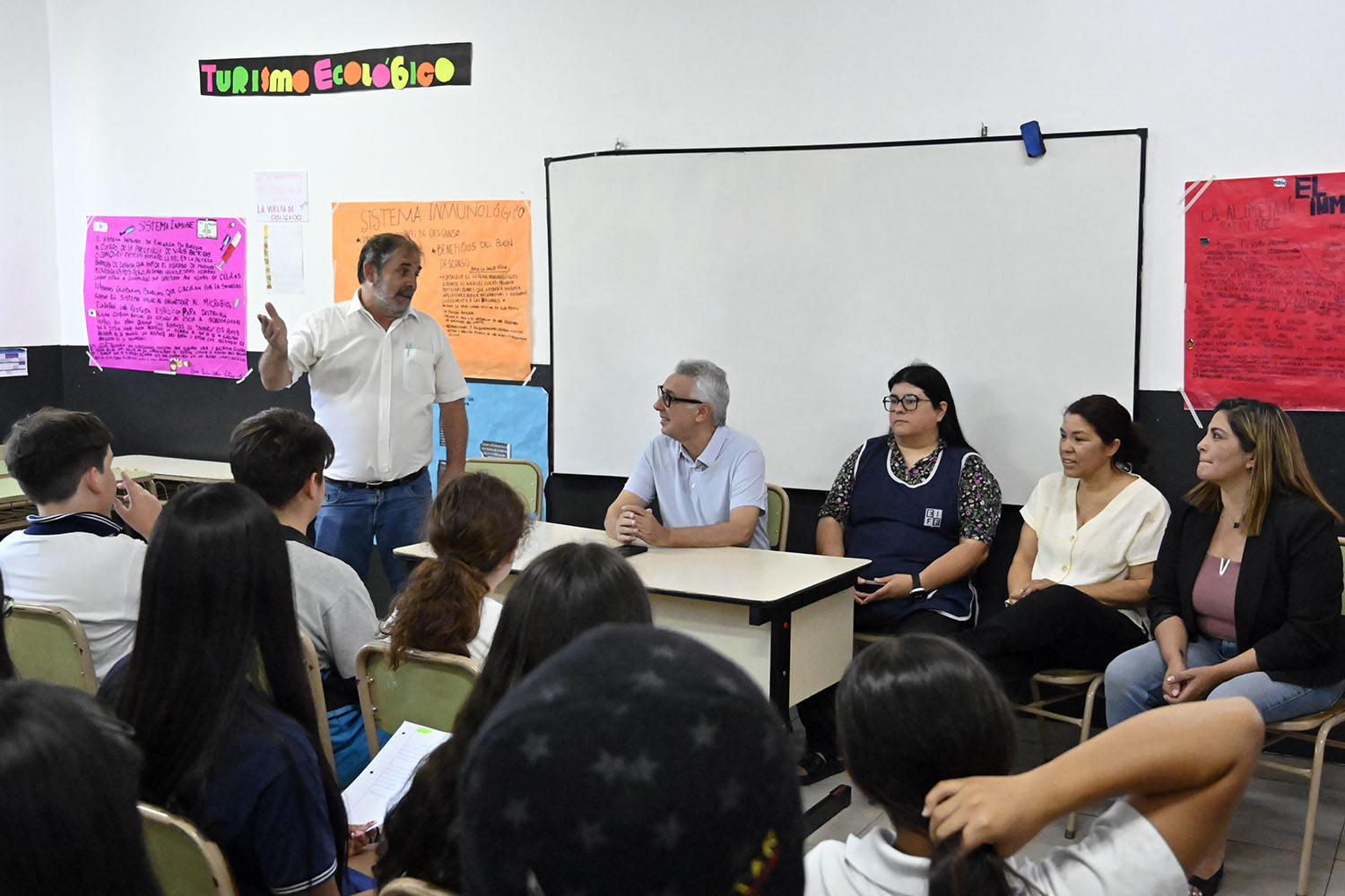 «Es muy importante que los funcionarios estén en contacto con la gente en el territorio y, sobre todo, con los jóvenes. Para nosotros es fundamental, porque venimos trabajando junto a cultura, educación, derechos humanos y desarrollo social, y que hoy el intendente visite la institución es realmente muy valioso», desarrolló Juan Azerrat; director del colegio Fernando Fader.
