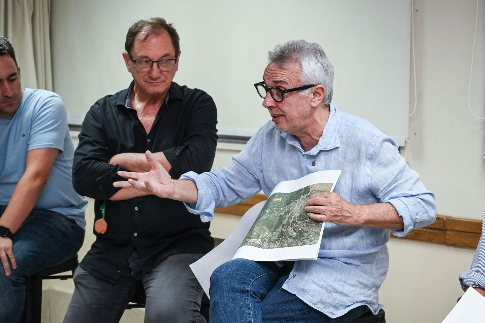 El encuentro se llevó adelante en el marco de la medida cautelar del HCD, la cual impide edificaciones mayores a dos pisos, normativa que no figura en el código edilicio aprobado en el año 1996. El jefe comunal realizó un recorrido histórico del desarrollo urbanístico del Municipio desde 1985 hasta la actualidad.