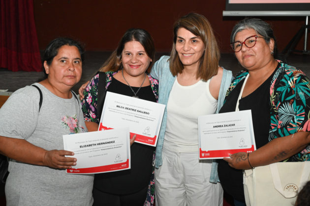 Autoridades del Poder Ejecutivo local participaron de la reunión que se realizó en la sede de los Bomberos Voluntarios del centro de la ciudad, donde los participantes recibieron su certificado correspondiente. Esta política pública está destinada, entre otras cosas, a fortalecer la independencia económica de las vecinas.