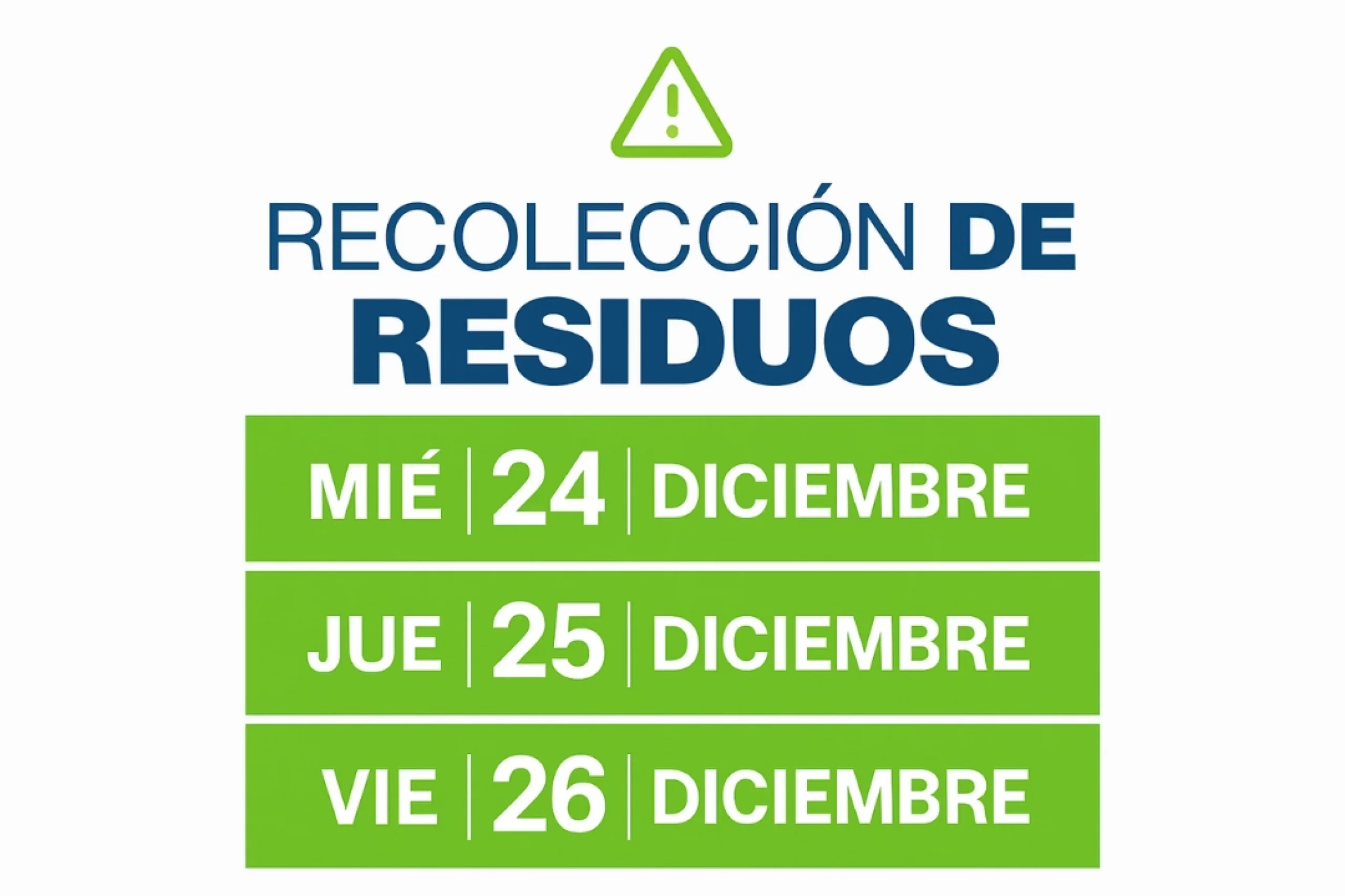 El miércoles 24 de diciembre, la recolección se realizará de 06 a 16 horas, el servicio será normal en avenidas principales y centros comerciales. Además, entre las 16 y las 21 horas, se llevarán a cabo dos servicios de recolección en esas mismas zonas.