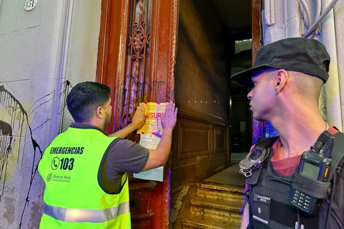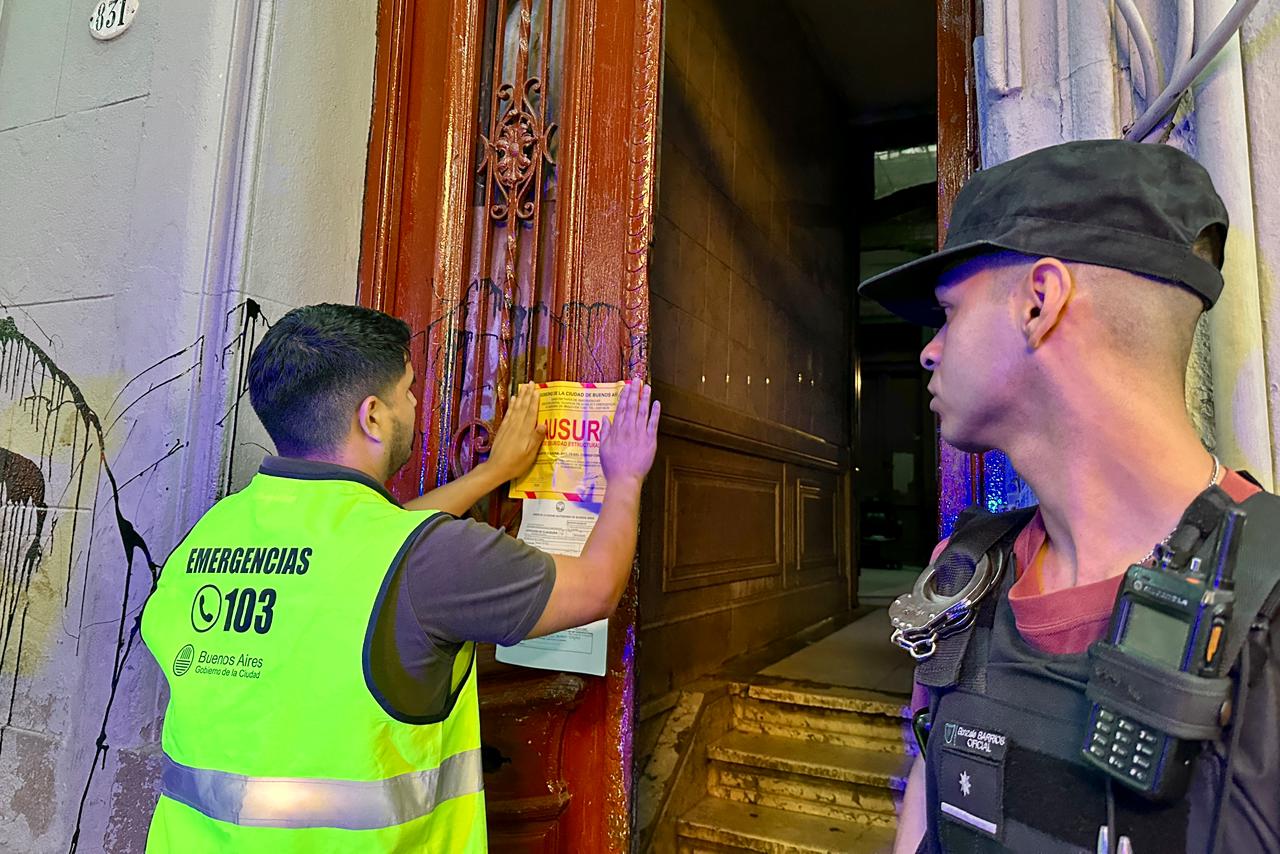 La inspección de la Guardia de Auxilio determinó peligro estructural y dispuso el desalojo total por riesgo de derrumbe y seguridad. Una persona se atrincheró y también fue desalojada. En el operativo participaron la Policía de la Ciudad, personal de la Guardia de Emergencias, y agentes de la Red de Atención y del Ministerio de Espacio Público e Higiene Urbana.