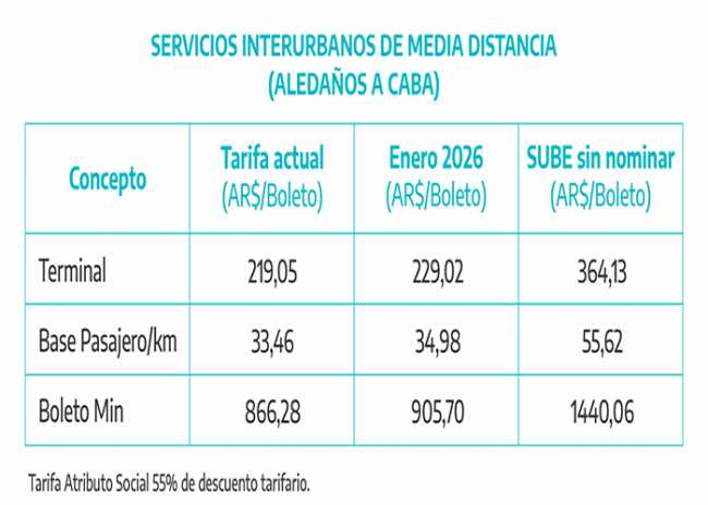 Transporte de pasajeros: actualización Tarifaria