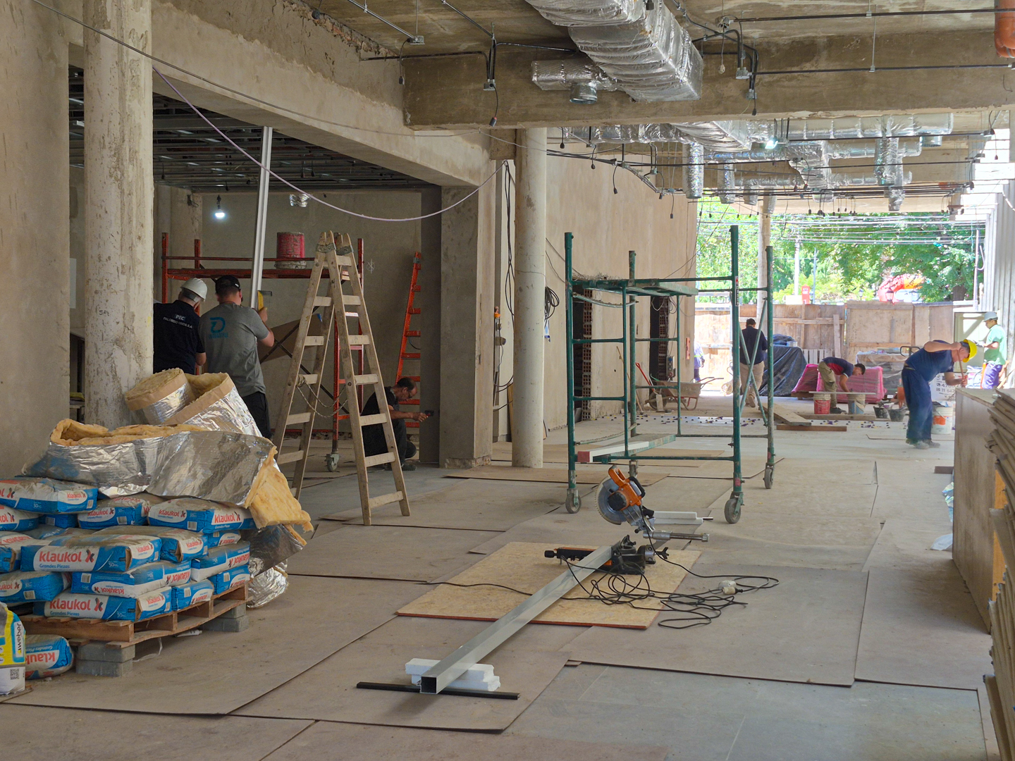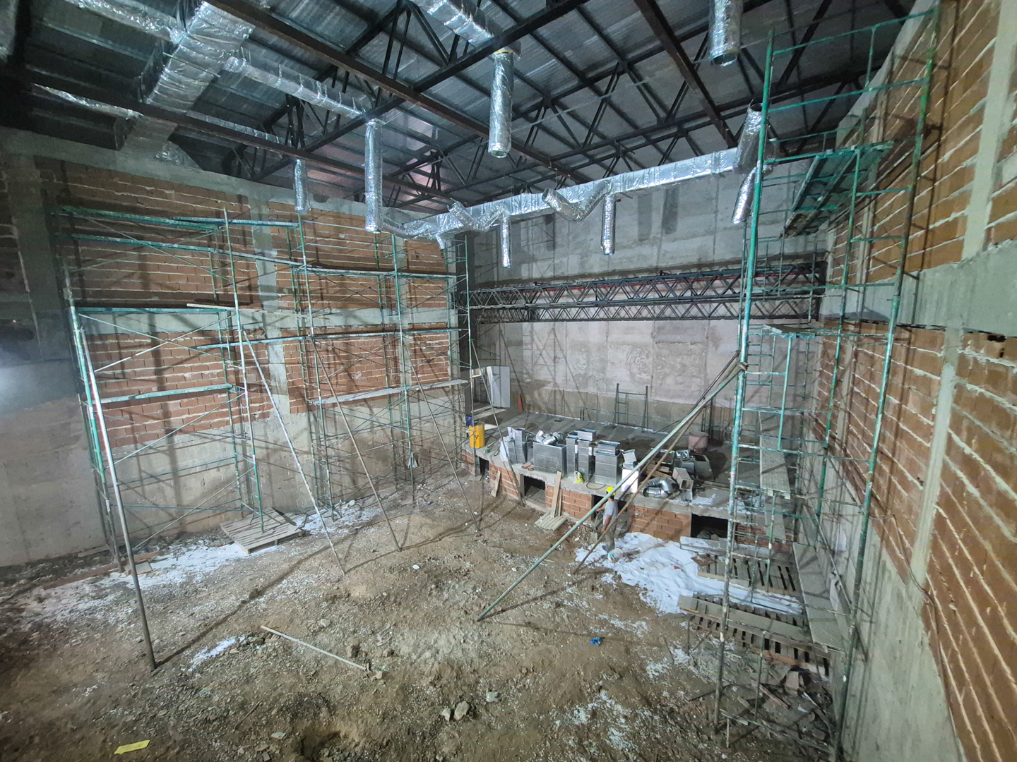 Actualmente, en el teatro se avanza con la colocación de pisos, revestimientos de paredes y cielos rasos, además de las instalaciones eléctricas y el montaje del sistema de aire acondicionado central; mientras que en la delegación se ejecutan trabajos de cielos rasos, colocación de aberturas e instalaciones eléctricas.
