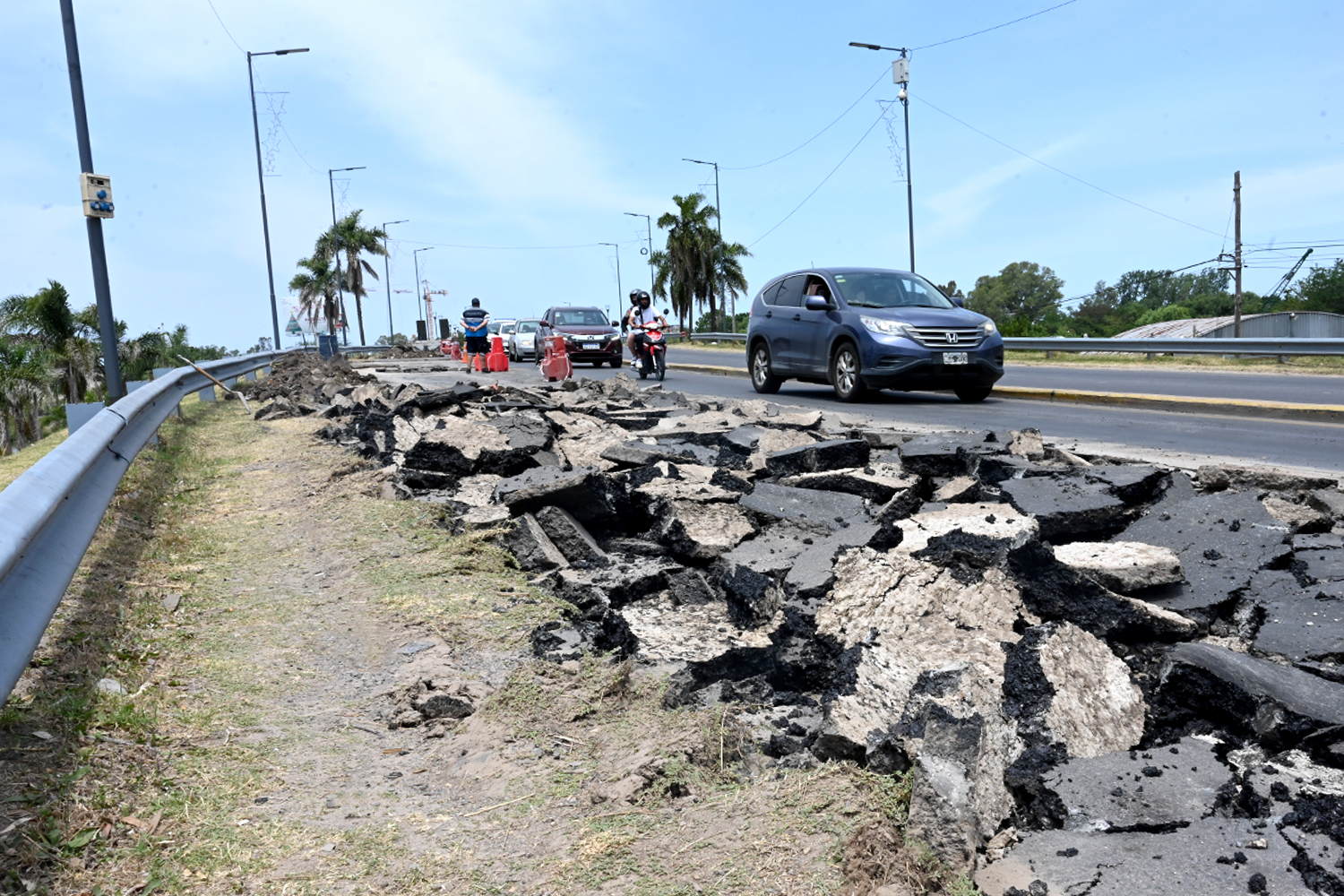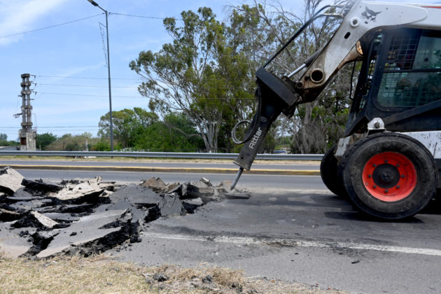 Las tareas se concentran en los bordes de la calzada y en los carriles de circulación lenta, sectores donde se habían generado baches y deformaciones del asfalto producto de las altas temperaturas. En estos puntos, se trabaja especialmente en las zonas de apoyo de los puentes y en las banquinas, que presentaban el mayor nivel de deterioro.