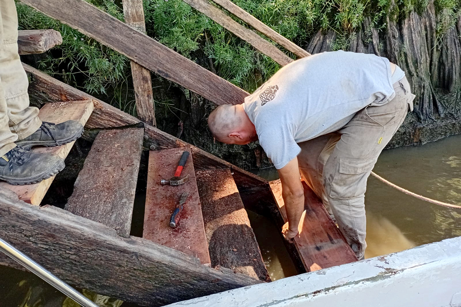 Entre las tareas realizadas, se completaron los trabajos de reparación y mantenimiento del puente público del Arroyo Santa Rosa, una estructura clave para la movilidad cotidiana de la comunidad isleña. Asimismo, se efectuó la puesta en valor del muelle del Museo Casa Haroldo Conti — sobre el Arroyo Gambado—, con el objetivo de preservar los accesos a uno de los espacios culturales más representativos del Delta.