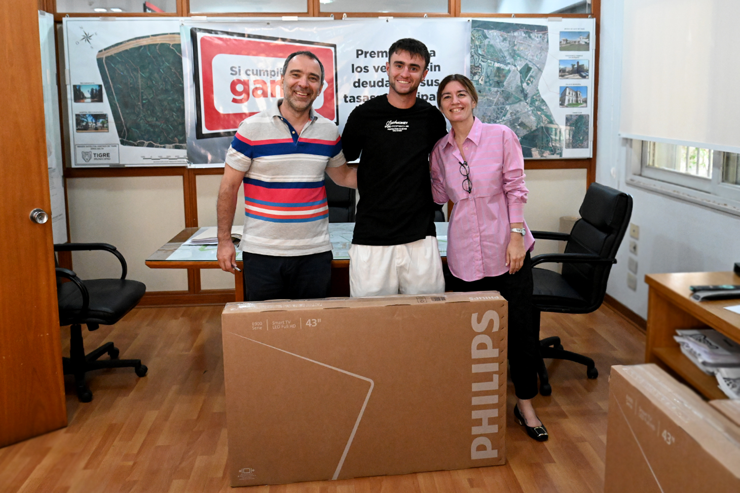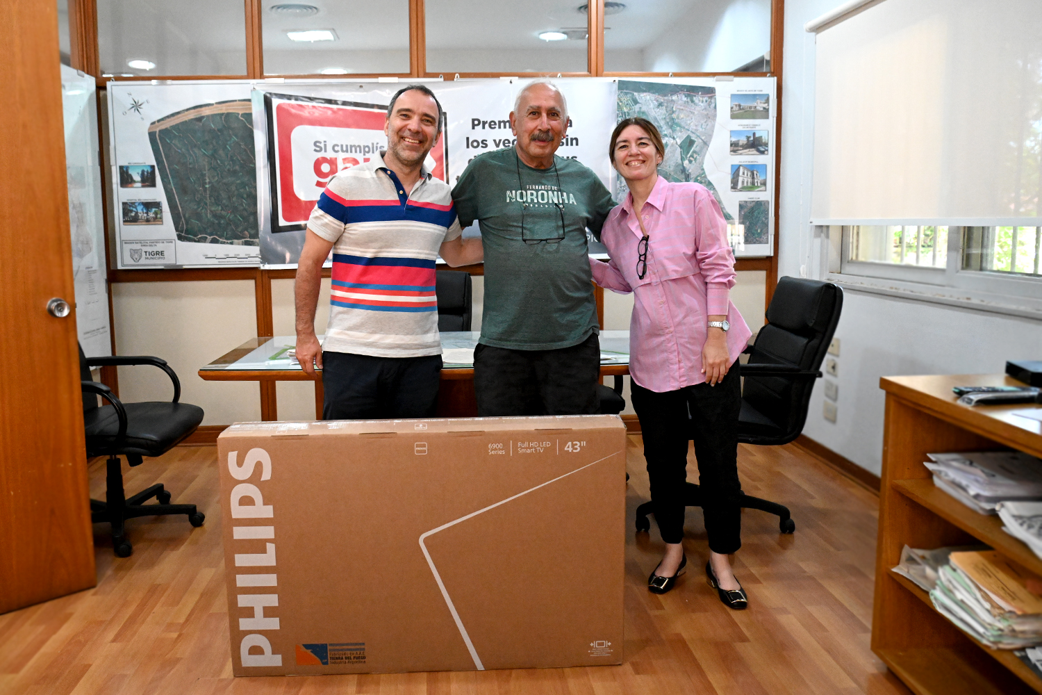 El Municipio de Tigre a través de su programa “Si Cumplís, Ganás”, reconoció a contribuyentes de diferentes localidades por pagar sus tasas en tiempo y forma. Se los premió con televisores LED correspondientes a los sorteos de los meses de septiembre, octubre y noviembre del año pasado.