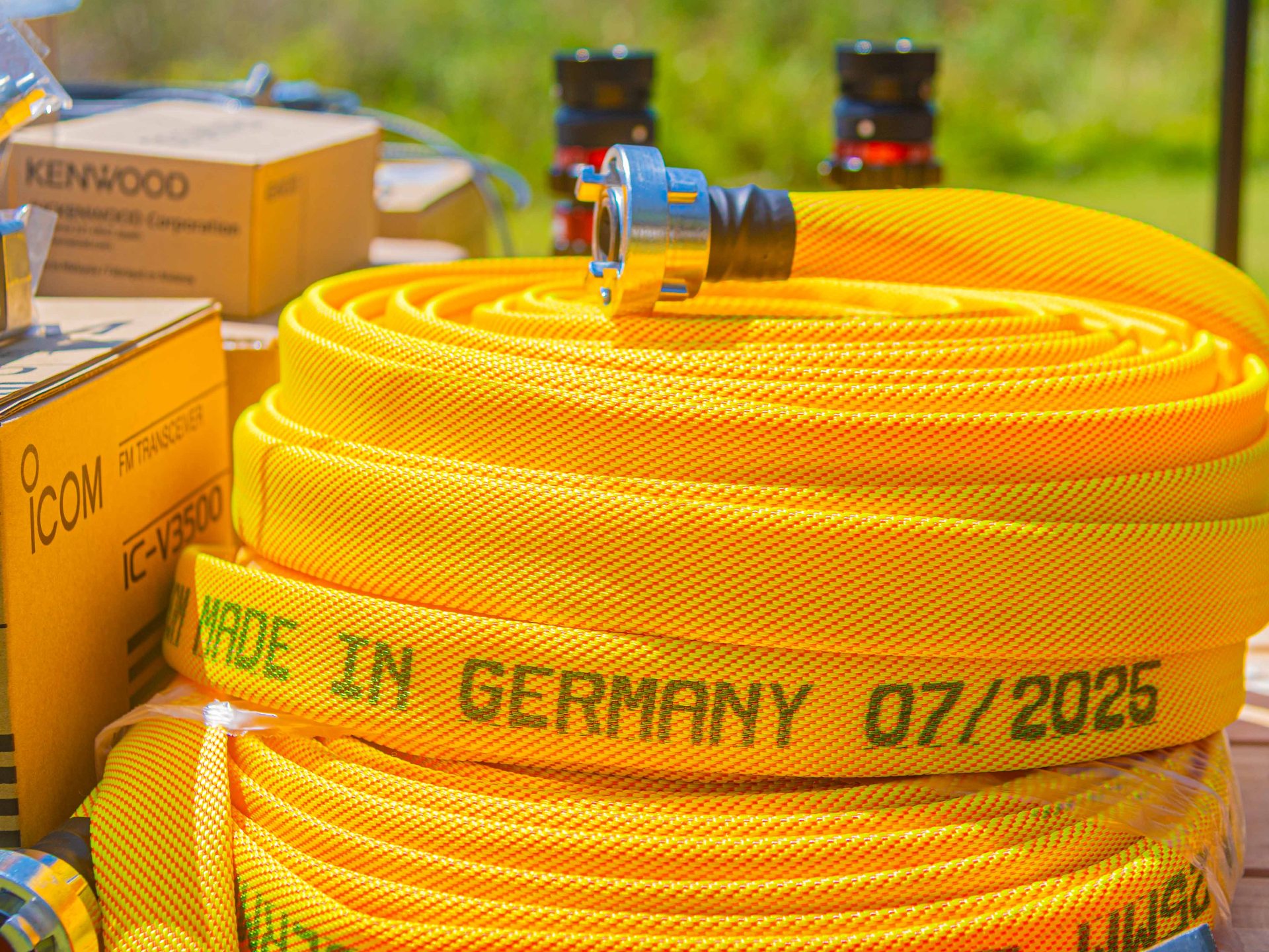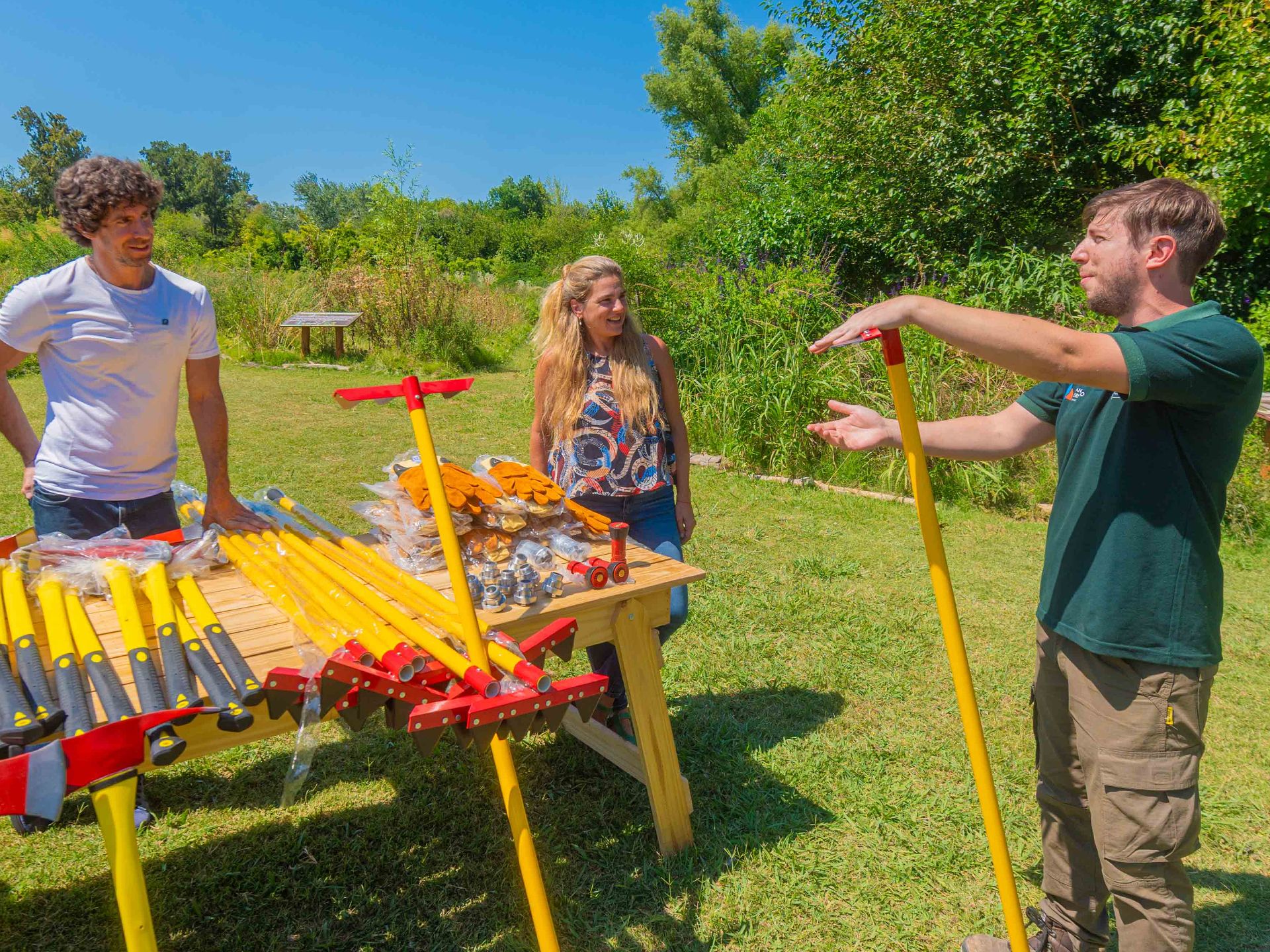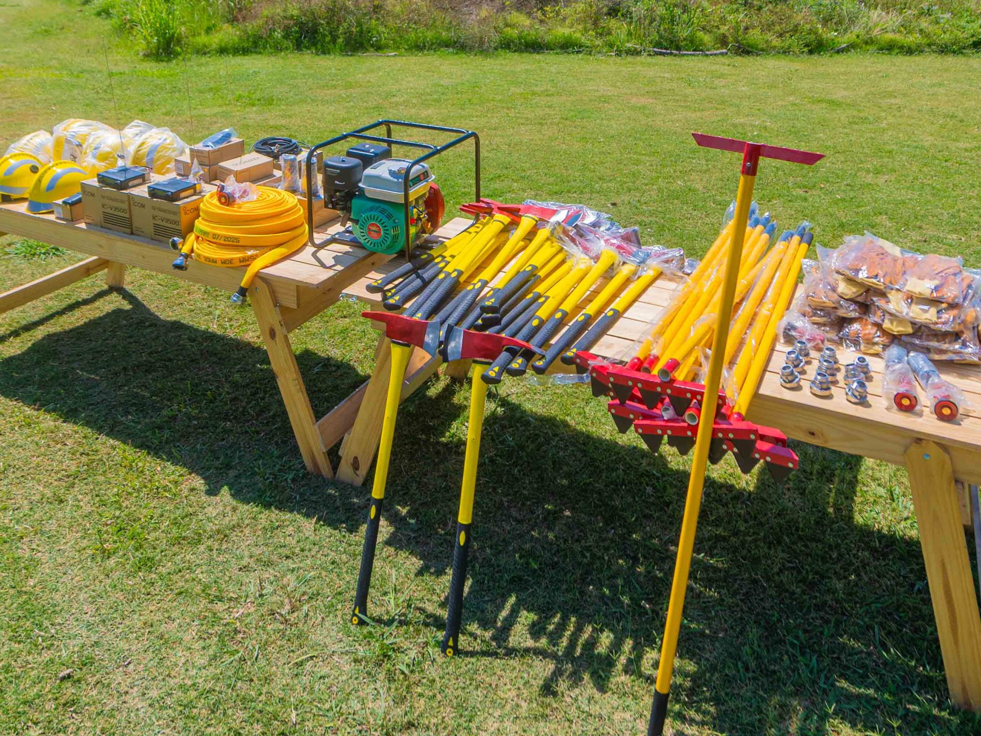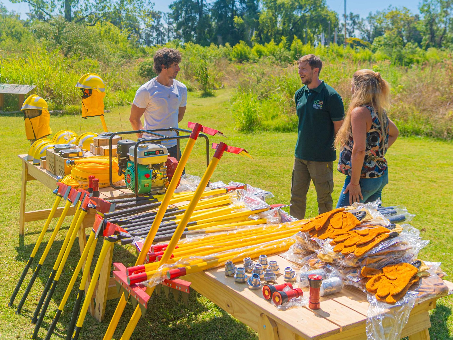 10 cascos Gallet F2 amarillos; 10 hachas de Bombero grandes; 10 rastrillos segadores; 10 herramientas Pulaski (hacha y azada combinadas); 3 mangueras de 30 m. Wildcat con acoples Storz; 1 motobomba forestal con manifold; 40 guantes forestales talle XL; 2 boquillas Protek 307 forestales de 1 pulg. y 2 boquillas Protek 309; 2 boquillas niebla ABS de 1 pulg. y 9 adaptadores de 1 pulg. Storz a rosca BSP.