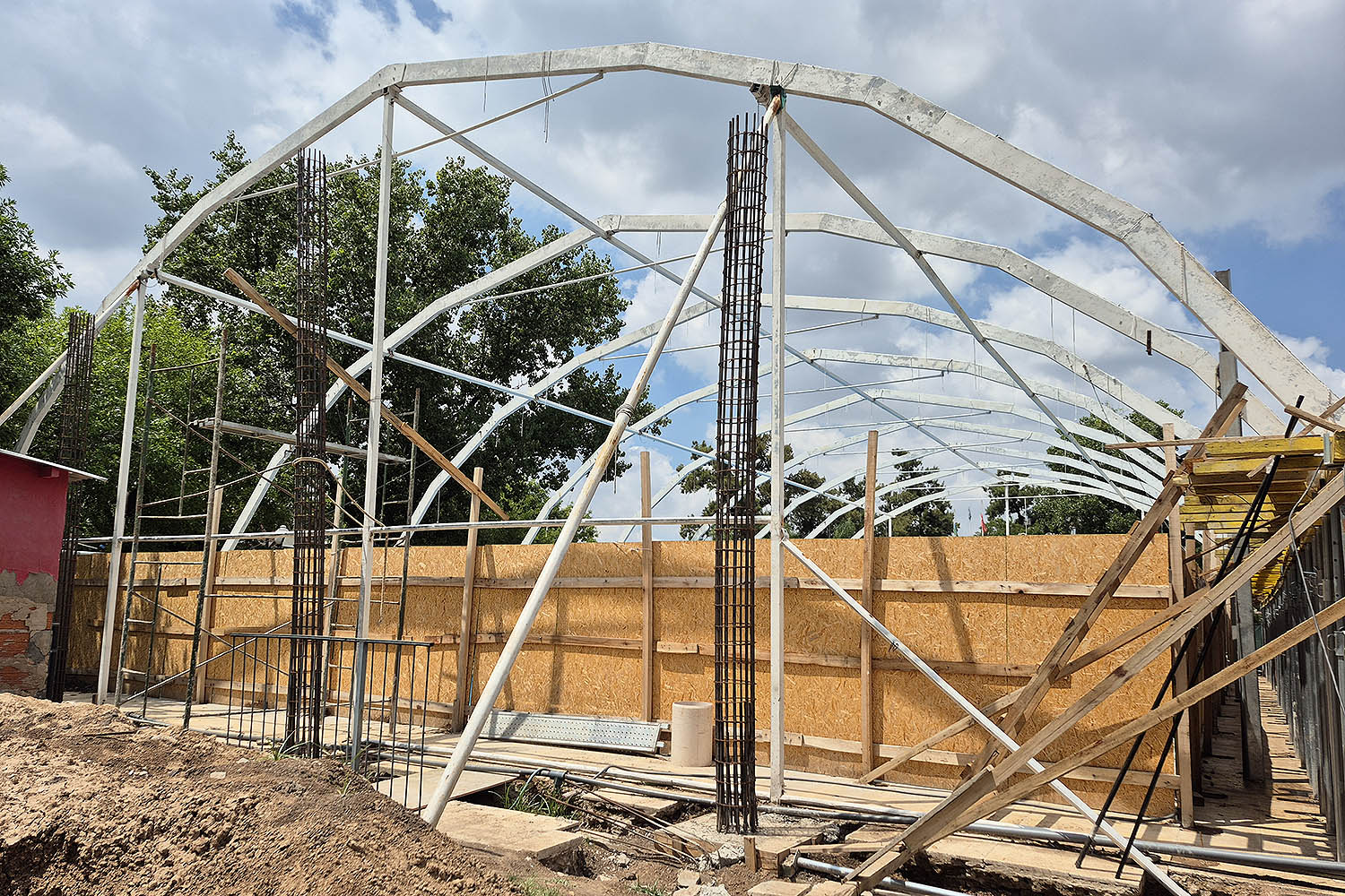 En el Polideportivo San Martín de la localidad de Don Torcuato, el intendente de Tigre, Julio Zamora, monitoreó la instalación de la nueva cubierta desplazable del natatorio.