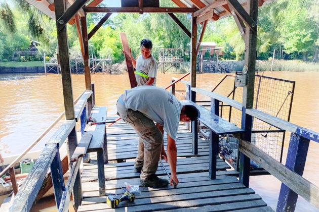 Asimismo, se ejecutaron tareas de mantenimiento y puesta en valor en el muelle público “El Carlín”, sobre el Río Sarmiento, donde se reforzó la estructura y se verificó el estado general de las maderas para asegurar un embarque y desembarque sin riesgos. En la misma línea, se efectuaron intervenciones en el muelle público “La Mami”, ubicado sobre el Arroyo Espera, mejorando las condiciones de uno de los principales puntos de acceso y encuentro de la comunidad isleña.