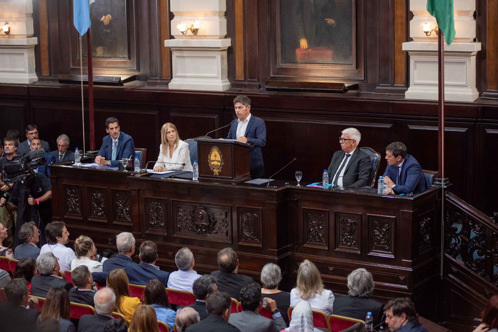 Frente a la 154° Asamblea Legislativa, el gobernador de la provincia de Buenos Aires, Axel Kicillof, brindó este lunes su discurso de apertura del año legislativo. Estuvieron presentes funcionarios provinciales, legisladores, intendentes, organizaciones políticas y sociales y organismos de derechos humanos.