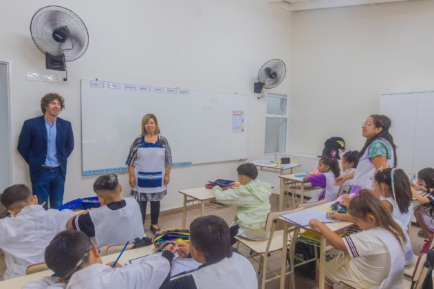 En su visita, el Intendente fue acompañado además por el Presidente del Concejo Deliberante Santiago Ríos; la Secretaria de Obras e Infraestructura Pública Cecilia Tucat, junto a secretarios municipales, funcionarios, concejales, la presidenta del Consejo Escolar Sandra Bergandi y autoridades de las escuelas inauguradas.