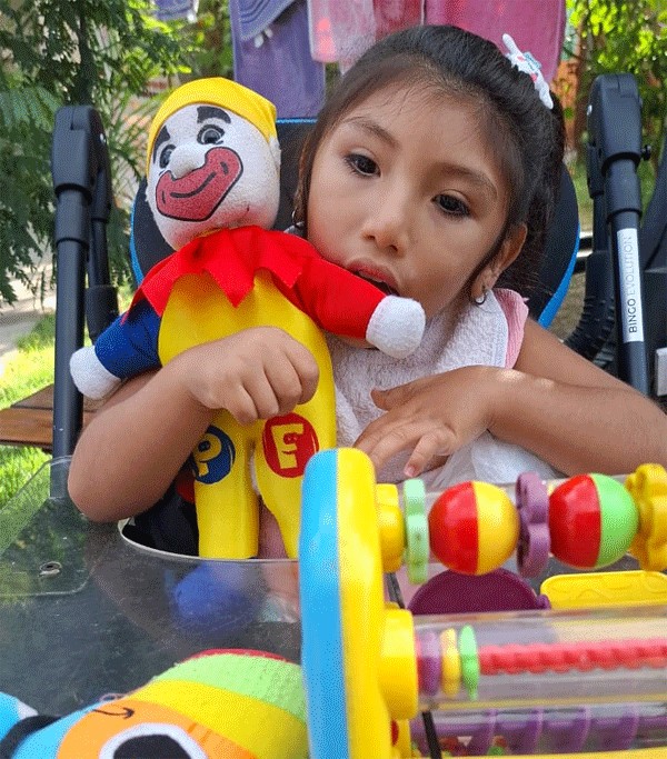 Nuria Callaguara tiene cuatro años y medio, nació con un síndrome genético llamado CASK. Padece parálisis cerebral, microcefalia, coloboma de nervio óptimo, hipoacusia lateral cerebelosa, tiene un botón gástrico y sonda para alimentarse, entre otros padecimientos.