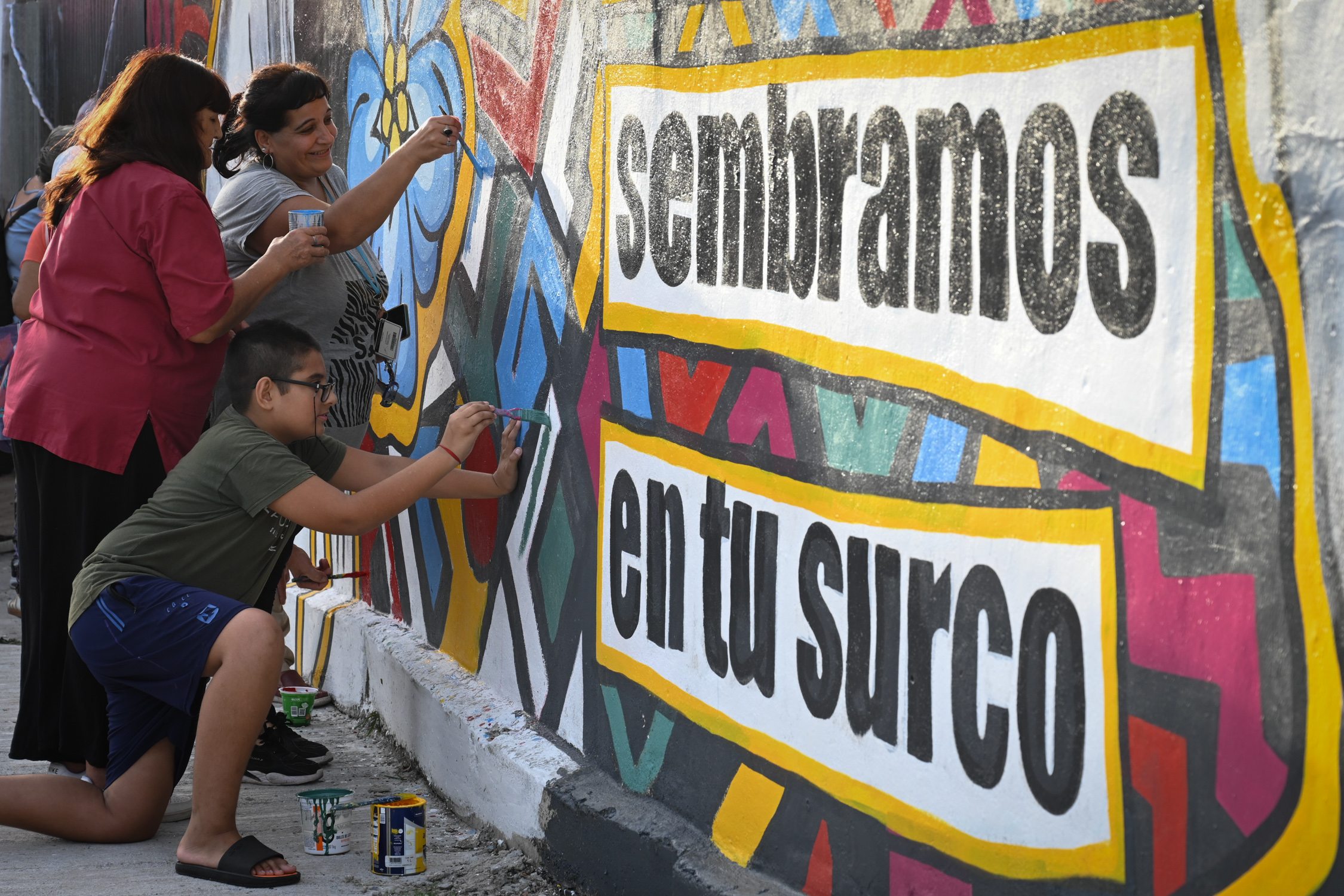 Por su parte, Nora Basilio exclamó: «Junto a las áreas de Juventud y Derechos Humanos vinimos al club a poner un poco en valor estas paredes, plasmar su identidad con el logo bien grande. La idea era que los chicos pinten las letras para que se sientan parte».