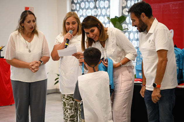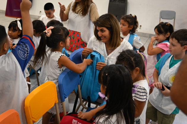 «Continuamos con la entrega de útiles escolares a todos los chicos de primer grado que inician la primaria. Están recibiendo la mochila con todo lo que necesitan para aprender. Esto colabora con las familias en una situación económica difícil que venimos atravesando», declaró la secretaria de Educación y Promoción Social, Gisela Zamora.