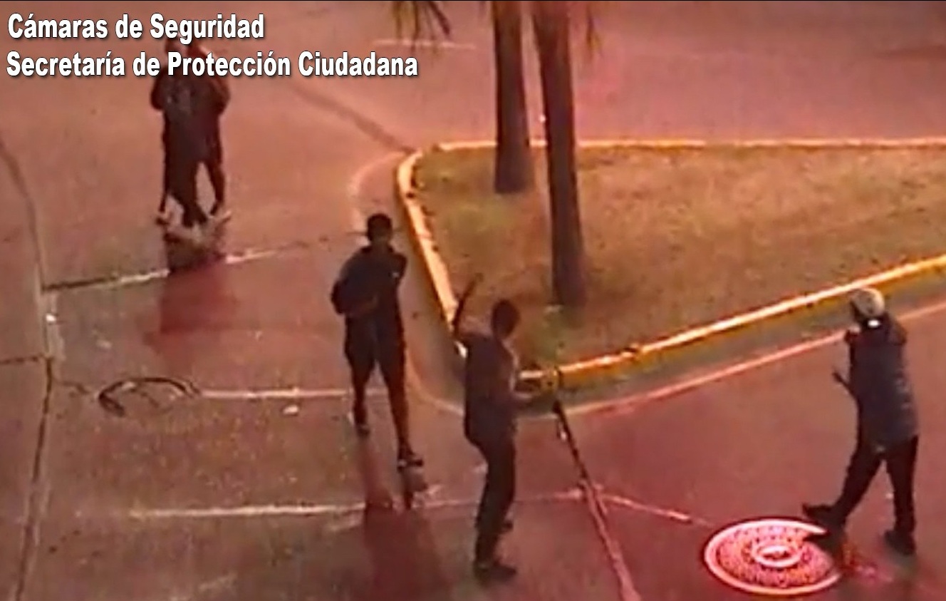 El sistema de videovigilancia local detectó lo ocurrido y los agentes activaron el protocolo correspondiente dándole aviso al móvil más cercano que arribó al lugar. Las fuerzas de seguridad y efectivos de la Policía de la Provincia de Buenos Aires se acercaron a la escena y redujeron al grupo involucrado.