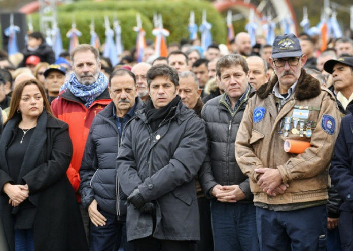 El gobernador de la provincia de Buenos Aires, Axel Kicillof, participó este jueves del acto por el Día de los veteranos y los caídos en Malvinas, realizado en la ciudad de Ushuaia, provincia de Tierra del Fuego, Antártida e Islas del Atlántico Sur. Fue junto al gobernador Gustavo Melella; su par de La Rioja, Ricardo Quintela; el intendente local, Walter Vuoto; el secretario de Malvinas, Antártida e Islas del Atlántico Sur y Asuntos Internacionales de Tierra del Fuego, Antártida e Islas del Atlántico Sur, Andrés Dachary; y el presidente del Centro de Excombatientes de Malvinas de Ushuaia, Juan Carlos Parodi.