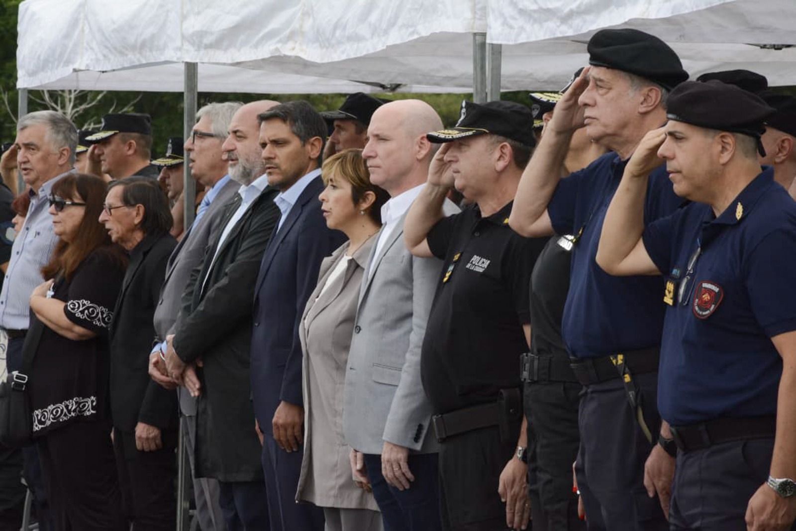 Del acto participaron autoridades del Ministerio de Seguridad, la Policía de la Ciudad, el Cuerpo de Bomberos de la Ciudad y veteranos de guerra invitados.