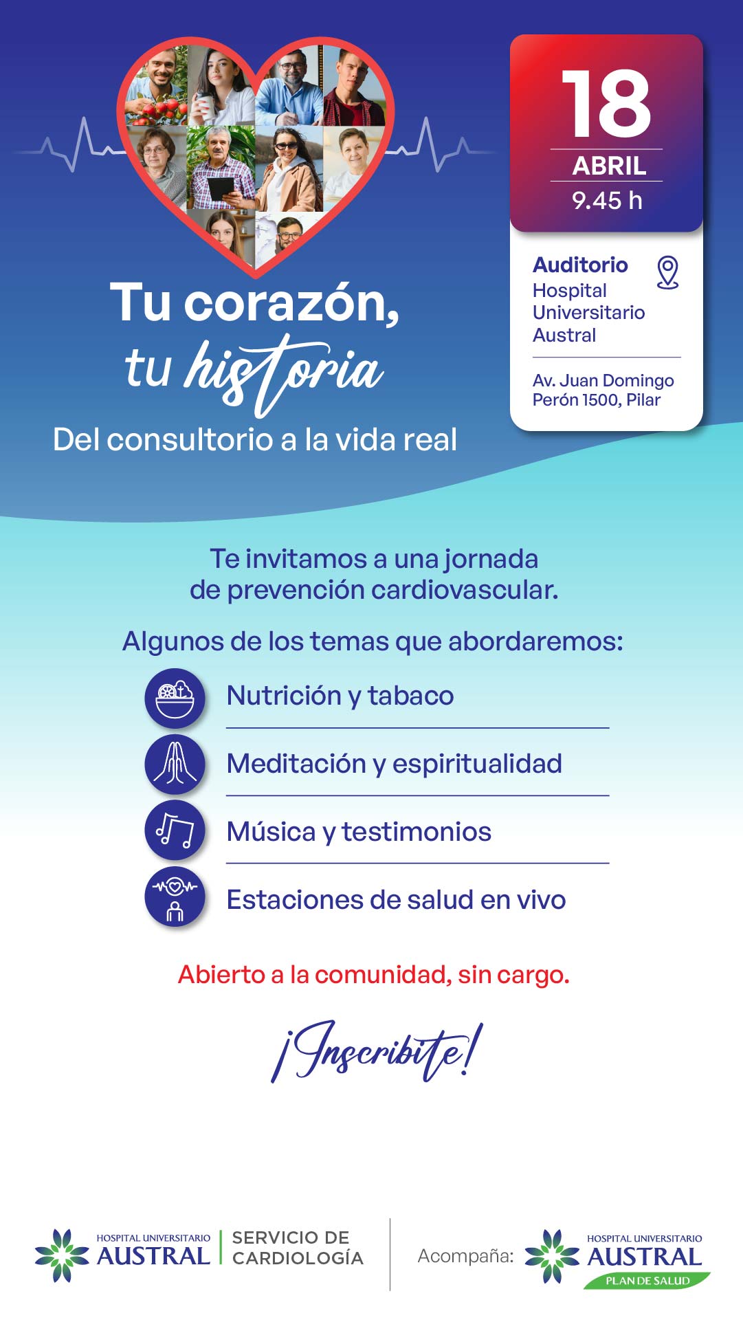 Con el foco puesto en la salud del corazón y el bienestar integral, el Hospital Universitario Austral abrirá sus puertas este sábado 18 de abril para una jornada libre y gratuita de prevención cardiovascular. El encuentro, que comenzará a las 9.45 en el auditorio de la institución (Av. Juan Domingo Perón 1500, Pilar), es una iniciativa abierta a la comunidad para fomentar hábitos de vida saludables.