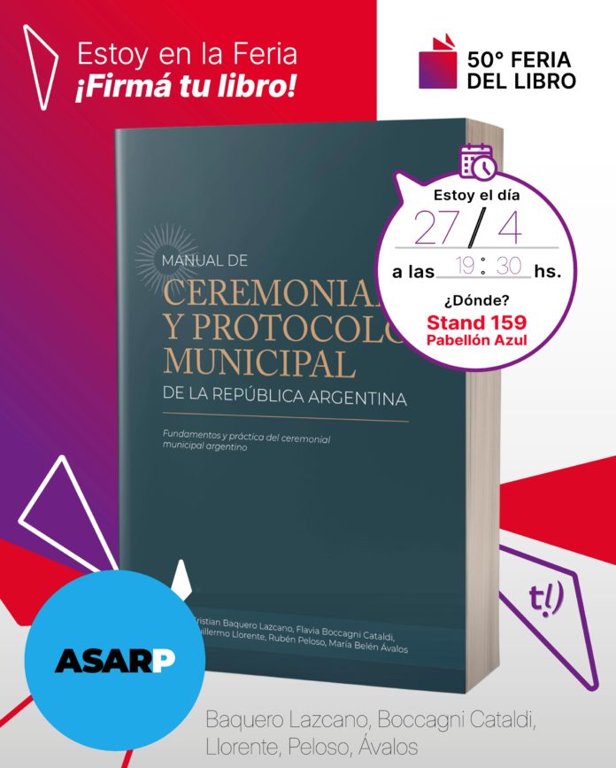 La Feria Internacional del Libro de Buenos Aires sumará este año una presencia poco frecuente y, justamente por eso, de especial relieve. En el marco de su Edición de Oro, el ceremonial y el protocolo ocuparán un lugar propio con la presentación del Manual de Ceremonial y Protocolo Municipal de la República Argentina. Fundamentos y práctica del ceremonial municipal argentino, una obra que viene a llenar un vacío histórico en la bibliografía especializada del país.